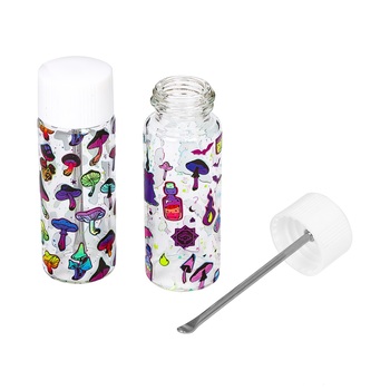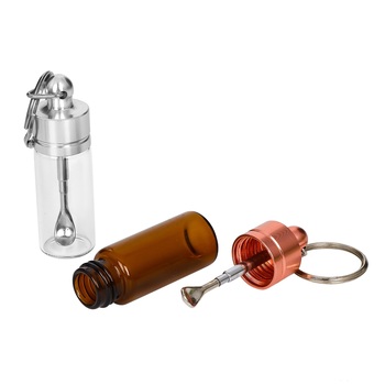 Portachiavi portatile all'ingrosso portachiavi in vetro Mini bottiglia di proiettile con cucchiaio estensibile cassa della pillola ambra e chiaro barattolo